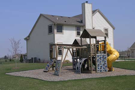 [8] Playground equipment and play lot games, including four-square, dodge ball, tetherball, and hopscotch.